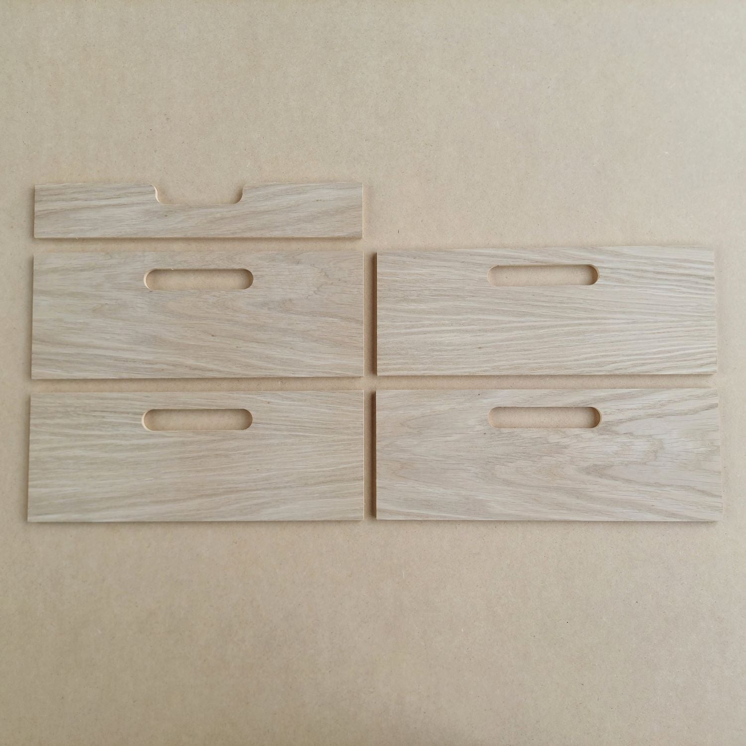 Skuffe fronter til montage med trælim, varmlim eller dobbeltklæbende tape.